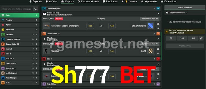 O Sh777 Bet oferece uma grande seleção de opções de apostas em e-sports com probabilidades competitivas
